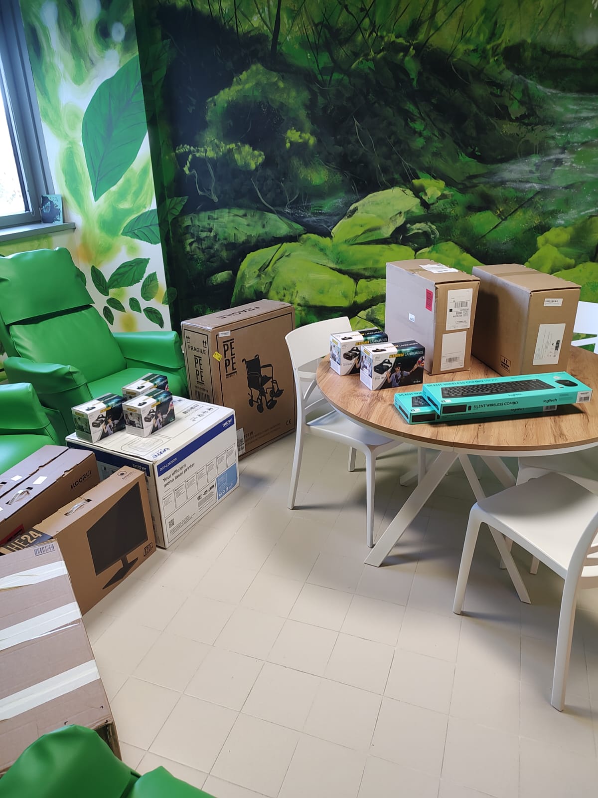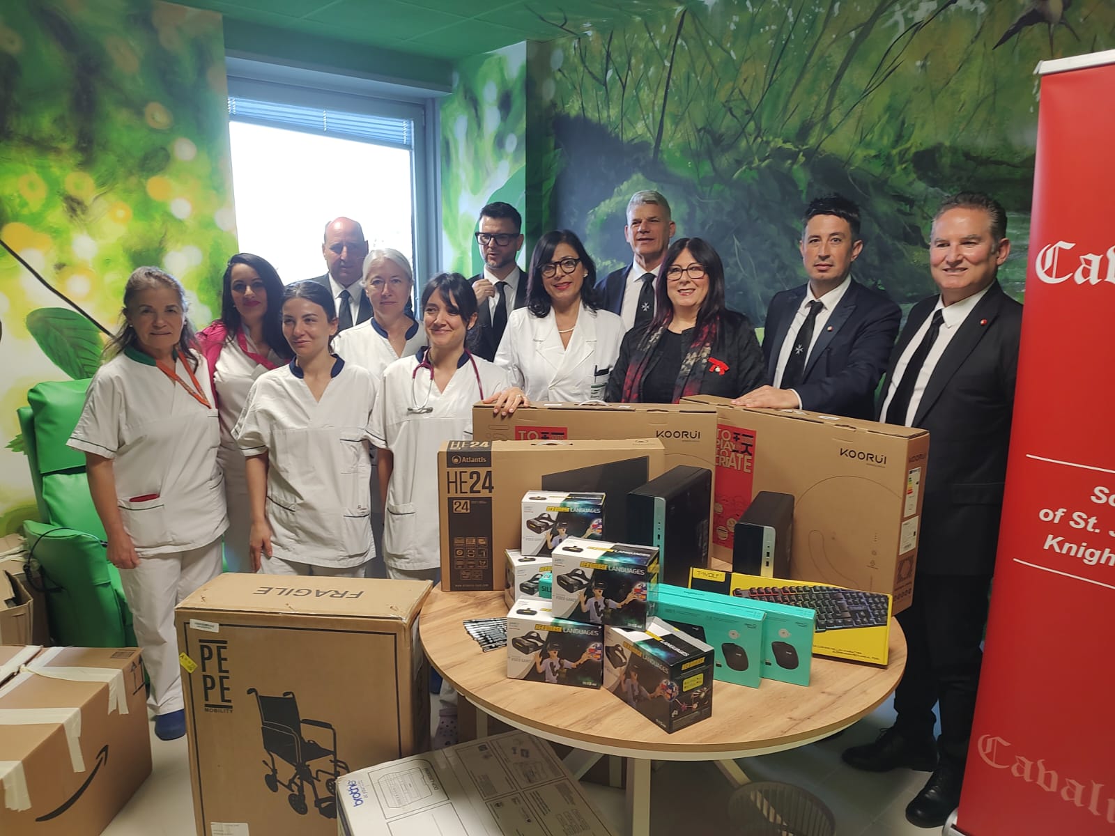 Durante la visita sono state consegnate diverse attrezzature informatiche e dispositivi innovativi, utili per il supporto alle attività sanitarie e al benessere dei pazienti: