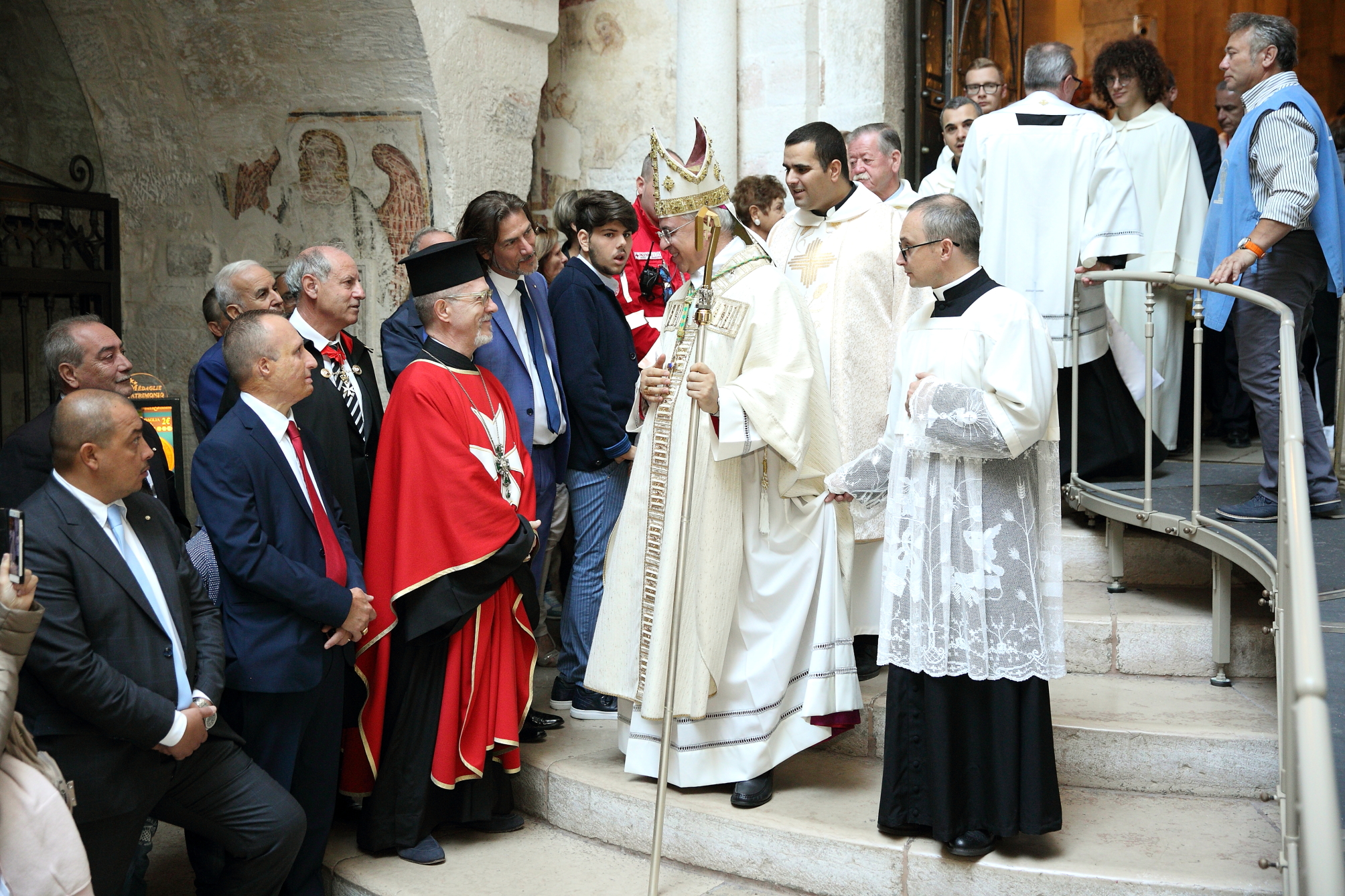 Alle ore 11 presso la Chiesa ove è custodita la Spada del Santo, il Gran Maestro unitamente ai dignitari e ai Cavalieri hanno partecipato alla Santa Messa officiata dal Vescovo.