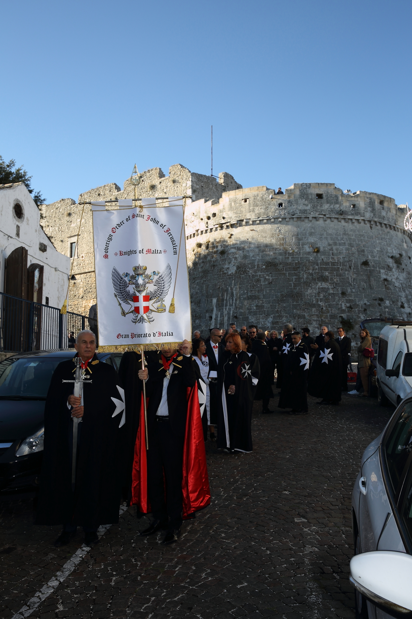 Successivamente dopo la pausa pranzo, alle ore 16.30, i Cavalieri assieme agli ospiti si sono ritrovati presso il Castello di Monte Sant’Angelo, per partecipare alla benedizione del castello e alla Cerimonia d’Investitura durante la quale sono stati nominati Cavalieri Eustachio Tamburrino e Angelo Damiani.