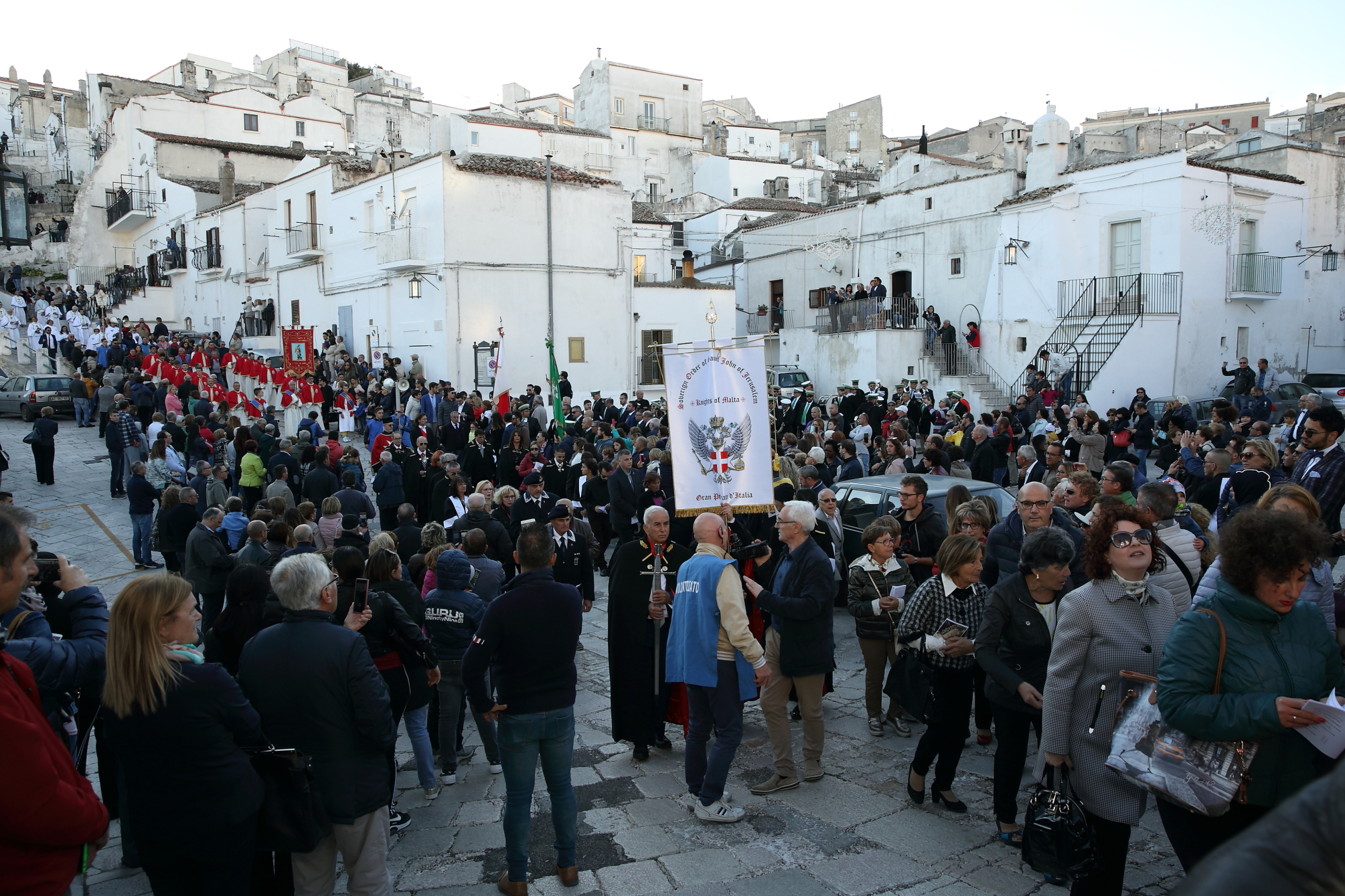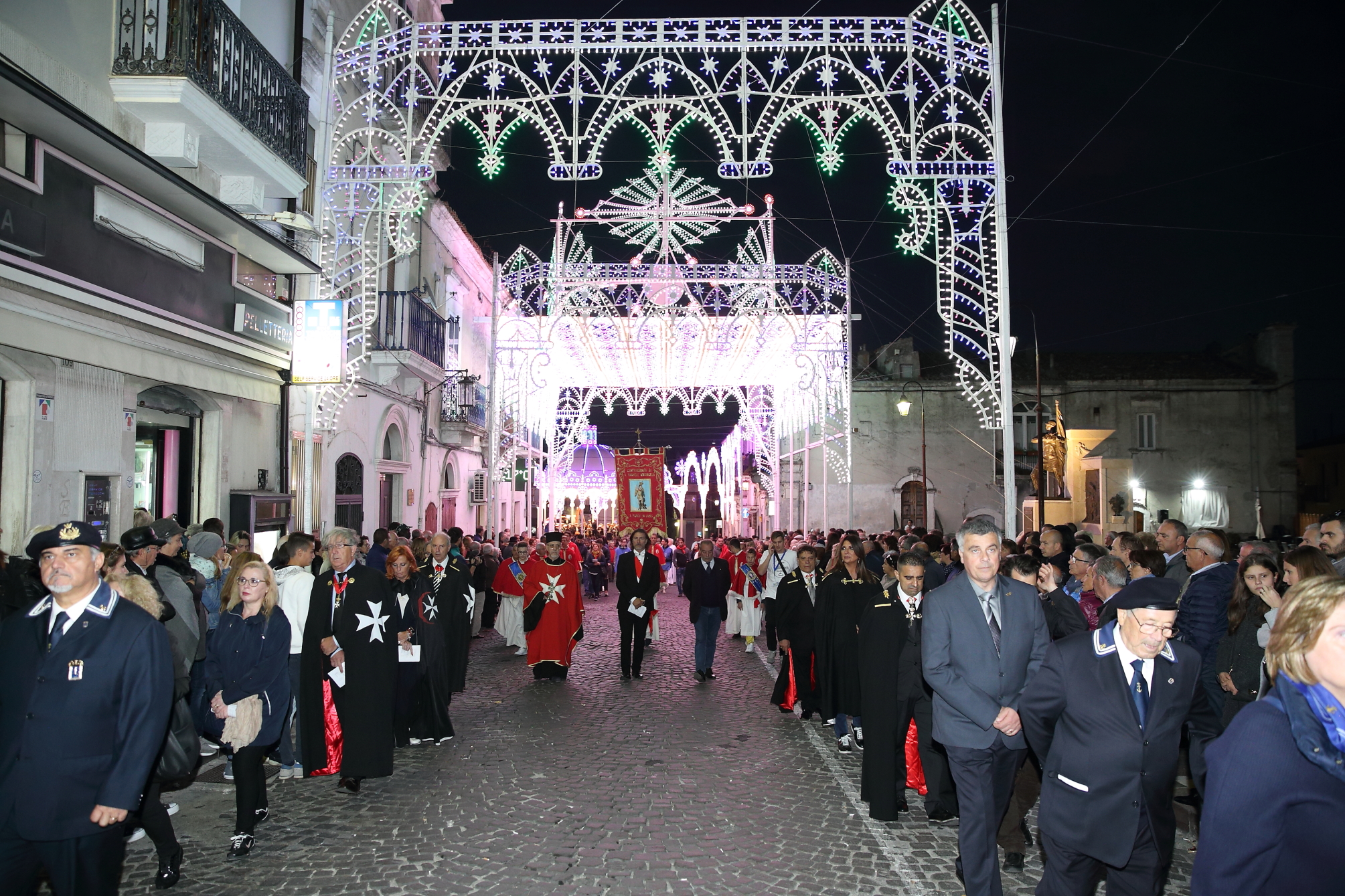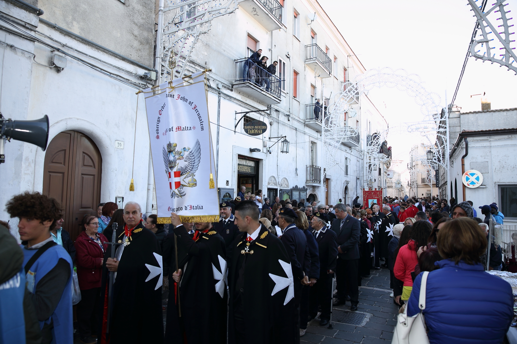 A seguire tutti i Cavalieri presenti hanno partecipato alla processione che ha visto il Santo uscire per le strade del paese, sino alla fine della processione.
